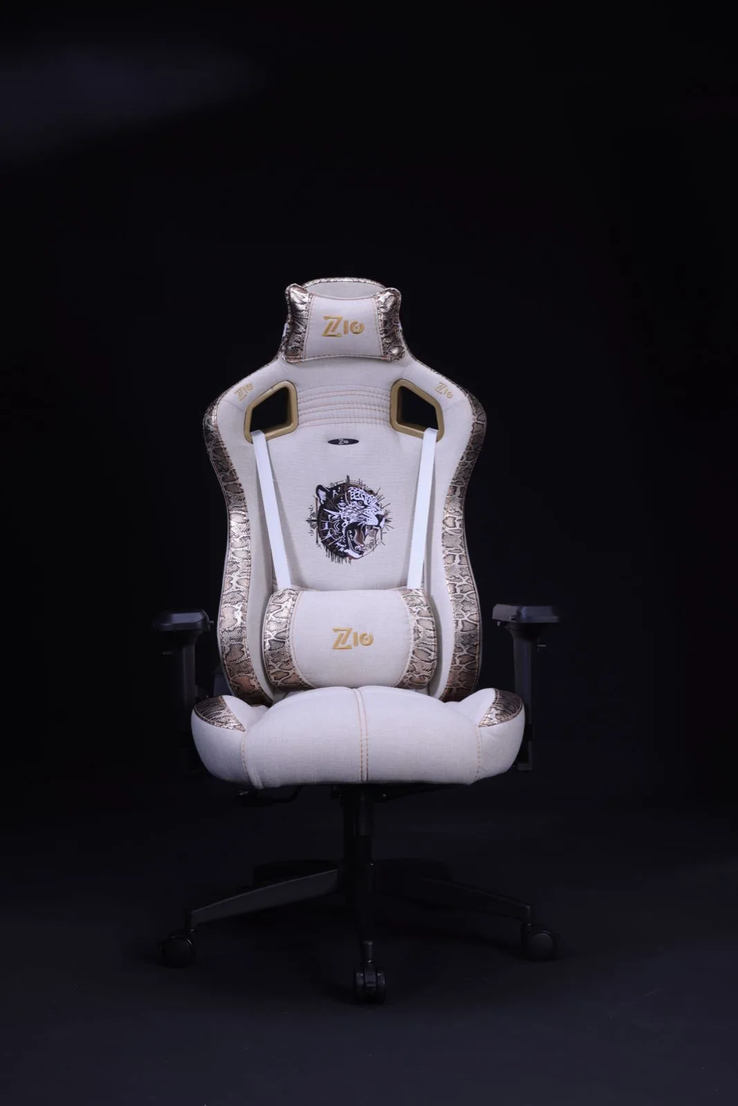 Bu özel tasarımın en dikkat çekici özelliği, yan panellerde kullanılan egzotik yılan derisi deseni ile merkezdeki saf beyaz dokunun yarattığı lüks kontrasttır. Sırt kısmına ustalıkla işlenmiş kaplan figürü, gücü ve kararlılığı simgelerken; altın rengi "Zio" nakışları tasarıma premium bir imza atıyor.